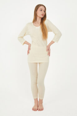 Doğal Konforun ve Isı Yalıtımının Keyfini Çıkarın: Soğuk havaların yaklaşmasıyla birlikte giyim tercihleri de değişmeye başlar. Hem sıcak tutan hem de rahat hissettiren kıyafetler bir adım öne çıkar. Kadın Kısa Kol Yün Fanila, bu ihtiyaçları karşılamak üzere özel olarak tasarlanmış bir üründür. Saf yün dokusuyla sıcaklığı ve konforu bir araya getirirken, nefes alabilir yapısıyla da tüm gün rahat etmenizi sağlar.