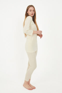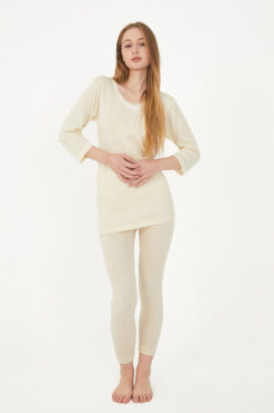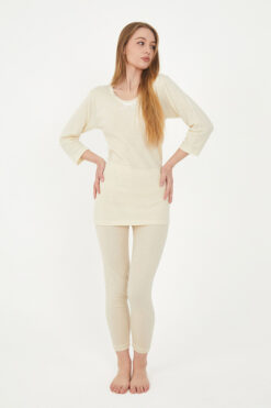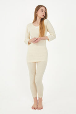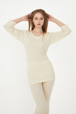Yün, doğal yapısıyla cildinize dost bir kumaştır. Kadın Uzun Kol Yün Fanila, hassas ciltler için uygun olan hipoalerjenik bir ürün olup cildinizi tahriş etmez. Yumuşak dokusuyla gün boyu rahat hissetmenizi sağlar ve sizi kaşındırmadan sıcak tutar. - %100 Doğal Yün: