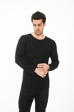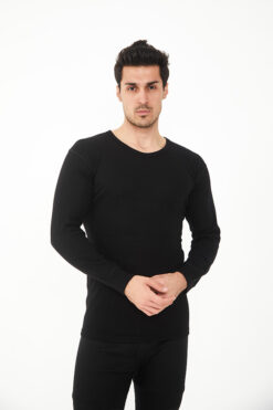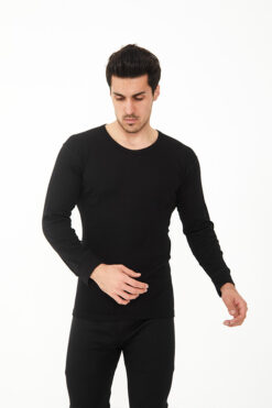 Siyah Uzun Kol Yün Fanila